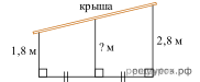 Наклонная крыша установлена на трёх вертикальных опорах, расположенных на одной прямой. Средняя опора стоит посередине между малой и большой опорами (см. рис.). Высота малой опоры 1,8 м, высота большой опоры 2,8 м. Найдите высоту средней опоры.